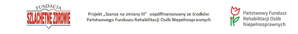 Fundacja Szlachetne Zdrowie od dnia 01-03-2025 r. rozpoczęła realizację Projektu pn. "Szansa na zmiany III", współfinansowanego ze środków Państwowego Funduszu Rehabilitacji Osób Niepełnosprawnych, w ramach konkursu nr 1/2024 pn. „Wspieramy aktywność” - Kierunek pomocy 1: wejście osób z niepełnosprawnościami na rynek pracy, którego celem jest wejście na rynek pracy co najmniej 8 osób spośród 22 uczestników projektu.