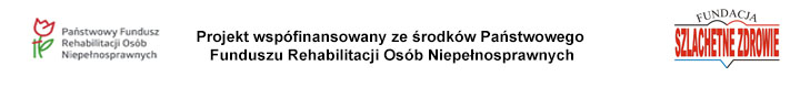 Projekt jest współfinansowany ze środków Państwowego Funduszu Rehabilitacji Osób Niepełnosprawnych, w ramach konkursu nr 1/2021 pn. „Sięgamy po sukces” z dnia 07-11-2021 r. Kierunek pomocy 2 - Zwiększenie Samodzielności Osób Niepełnosprawnych.